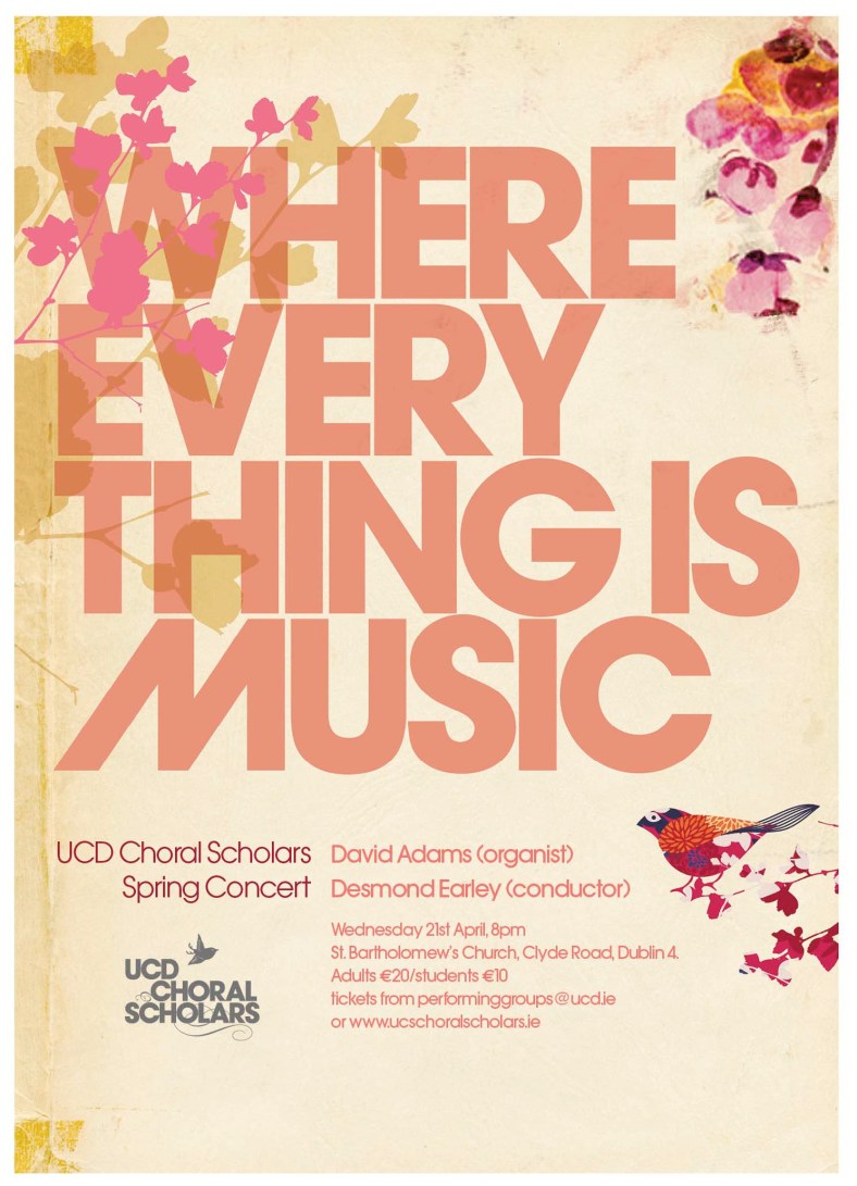 UCD Choral Scholars Poster Posted on February 16, 2011February 17, 2011 by tasteofthunder Share this: Click to share on Facebook (Opens in new window) Facebook Click to share on X (Opens in new window) X Like Loading... Related
